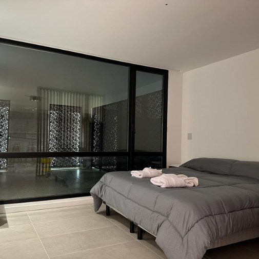 Cómodo departamento de cuatro ambientes, compuesto por un living comedor equipado con un espacioso sillón cama, adornado con múltiples almohadones, mesas ratonas, mesa de comedor con sillas, individuales, lámpara de pie, TV Led de 40”, y múltiples elementos de decoración. A continuación, se encuentra el dormitorio equipado con amplias y cómodas camas individuales, las cuales pueden unirse para convertirse en camas Queen. Cuenta además con TV Led de 32” y mueble amplio donde guardar prolija y ordenadamente sus pertenencias. Cocina completa equipada con heladera, cocina de 4 hornallas con horno, horno microondas con grill, y todo el equipamiento necesario para su mejor estadía, desde vajilla hasta utensilios de cocina. Baño completo que incluye bidet.