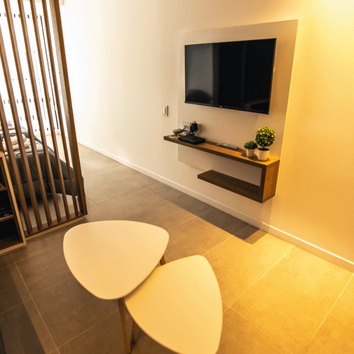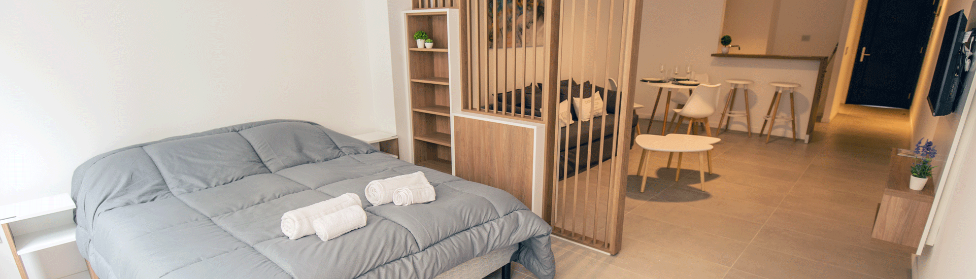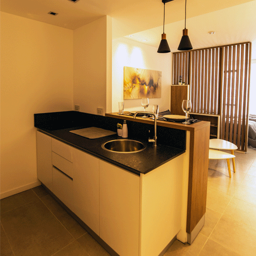Departamento con asoleamiento hacia el Este, muy luminoso; espacioso muy bien insonorizado, especialmente pensado para parejas, familias con un niño, y personas en viajes de negocios, o para un grupo de tres amigos.
